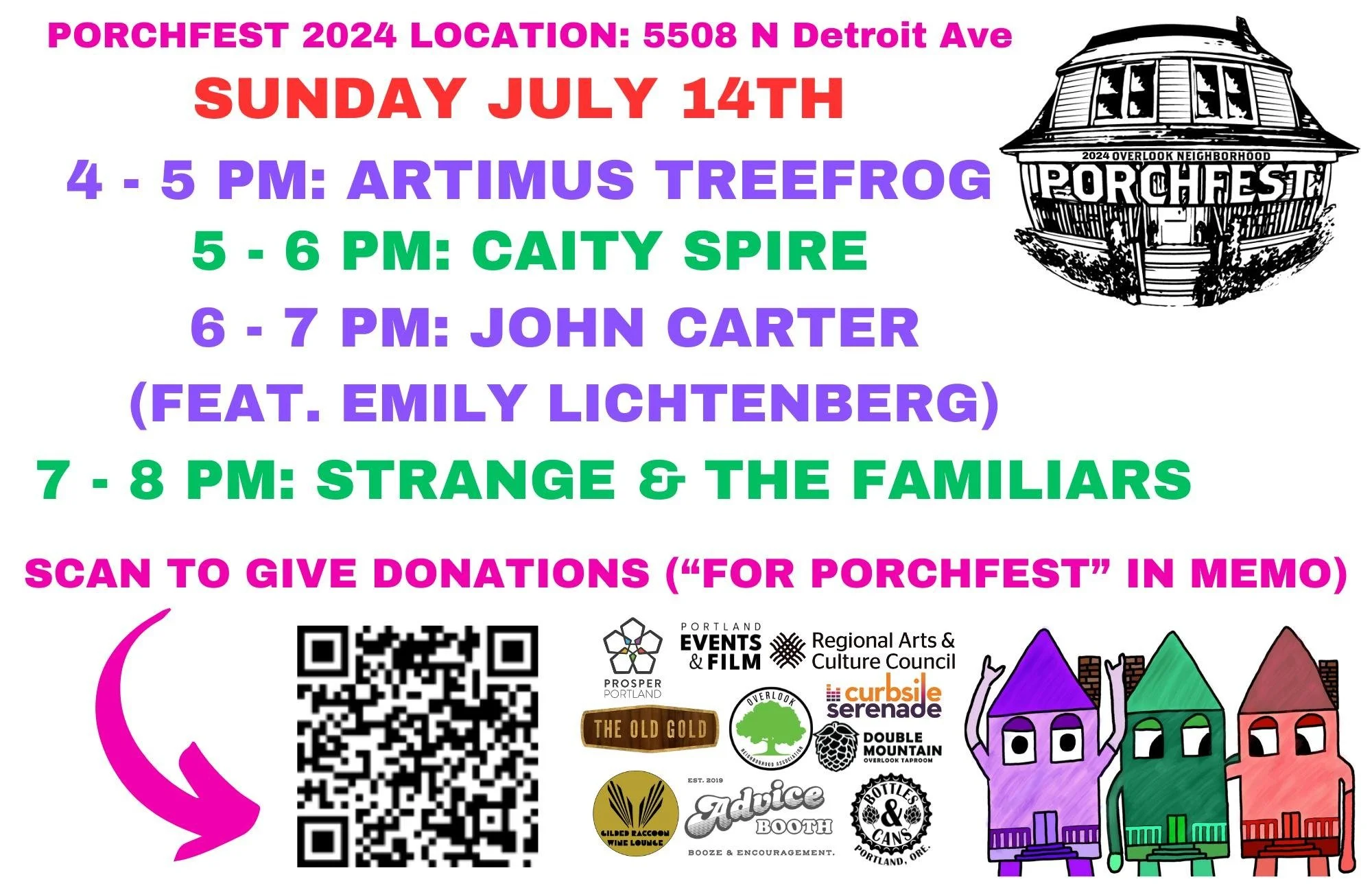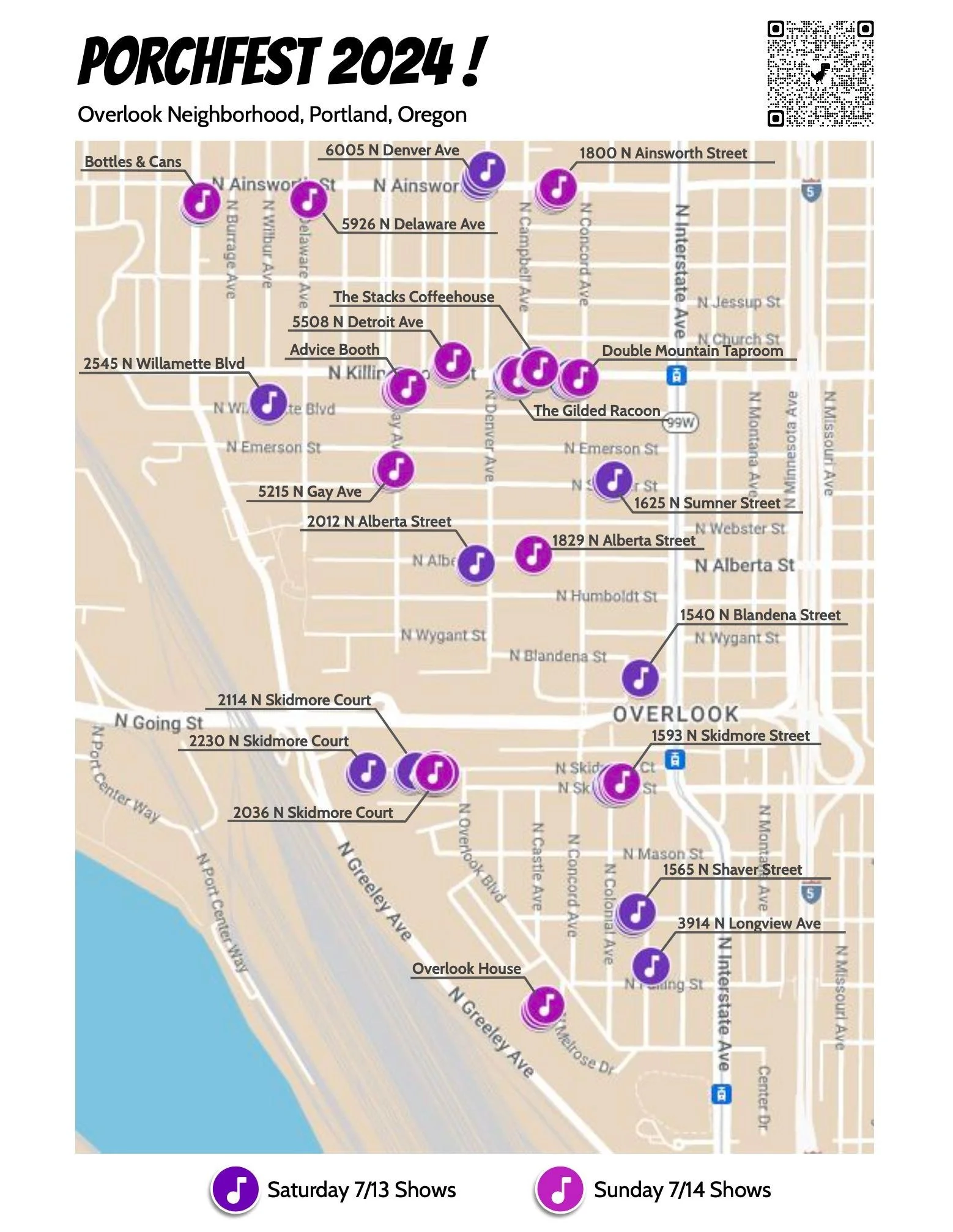 This Porchfest will be the biggest one yet! We have over 70 musical acts booked, who will be accompanied by live painters scattered about, as well as members of the Rogue Writer's Guild offering typewriter poetry. We have a host of sponsors to support our musicians - Prosper Portland, Portland Events & Film, Regional Arts & Culture Council, The Old Gold, OKNA, Curbside Serenade, Double Mountain, Gilded Raccoon, Advice Booth, and Bottles & Cans.