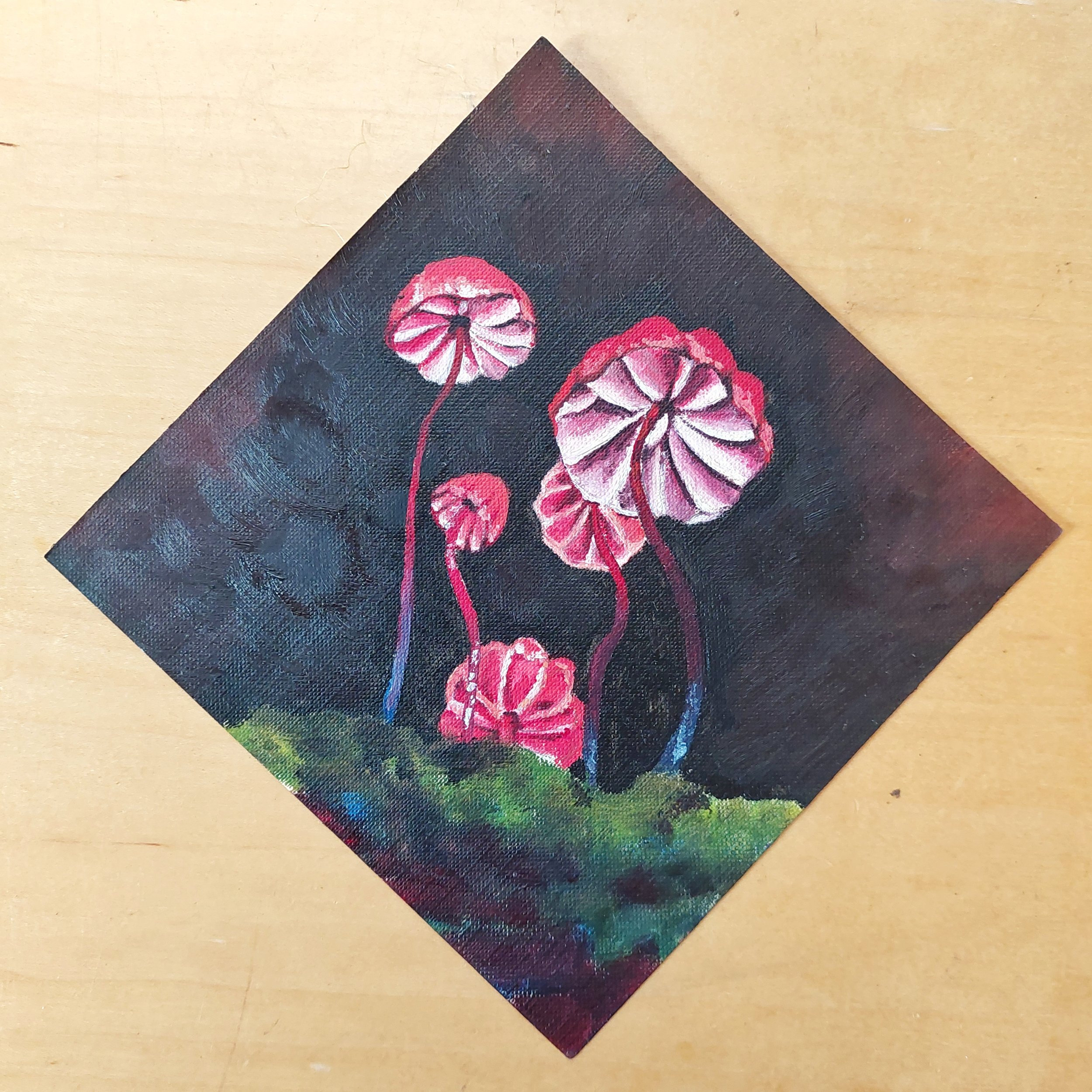Original Art › Mycena haematocephala Image 1 of 1 Mycena haematocephala $50.00 Only 1 left in stock 6x6in original oil painting Add To Cart Added! 6x6in original oil painting